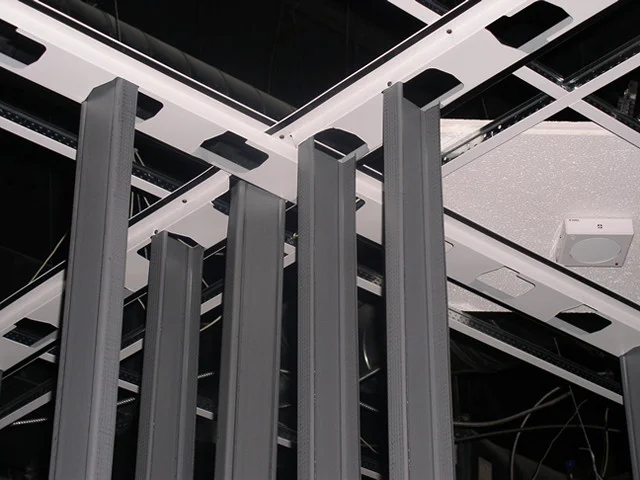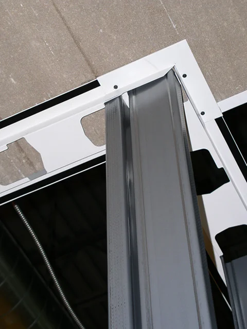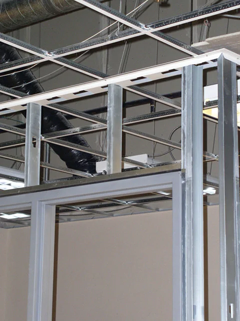 24" stud spacing; Eliminator Track tied into ceiling grid at perimeter edge molding